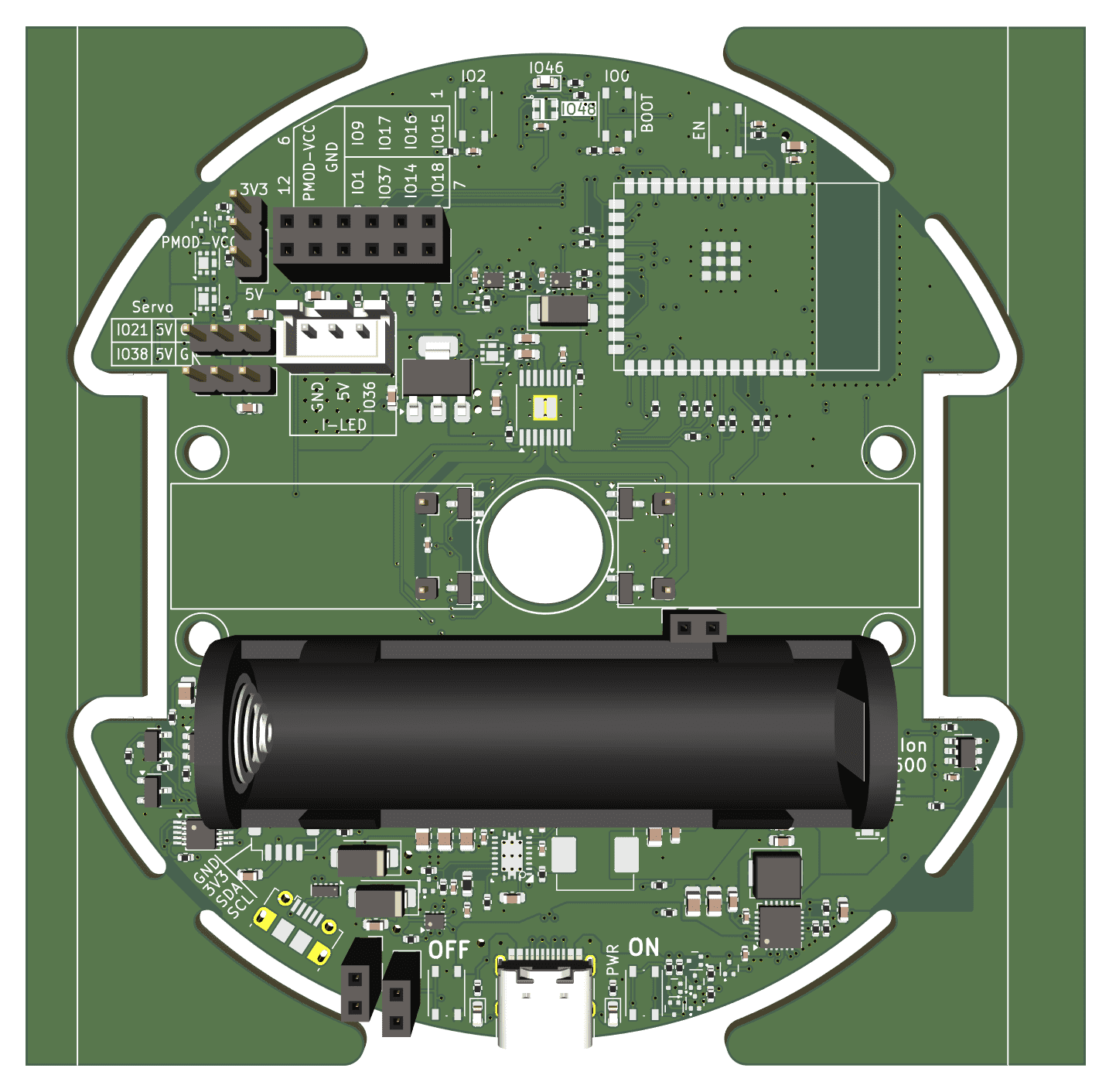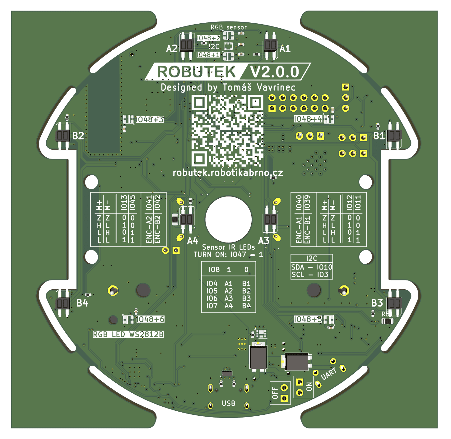 GPIOpro digitální vstupy a výstupyADCpro čtení analogových hodnot z odrazových senzorůPWMpro řízení serv a motorůkvadraturní enkodérypro zpětnou vazbu pohybu motorůI2Cpro senzoryWS2812Bpro RGB podsvícení