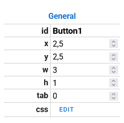 Nejprve však zopakování obecných vlastností z předchozího bloku. U každého widgetu si v designeru nastavujeme několik obecných vlastností: id widgetu a jeho pozici (x a y) a velikost (výška h a šířka w). Tyto vlastnosti jsme z robůtka schopni pouze číst a ne upravovat.